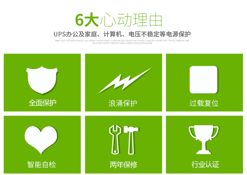 | 有聲報(bào)警 | 市電停電時(shí)報(bào)警:低電量電池報(bào)警 | 浪涌能量額定值 | 180焦耳 |