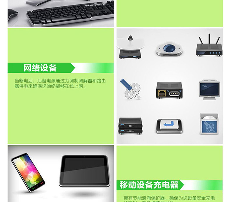電池保護(hù)和電涌插座:為需要UPS備用電池的連接設(shè)備儲(chǔ)備電源容量和運(yùn)行時(shí)間,同時(shí)為太重要的設(shè)備僅提供浪涌保護(hù)。