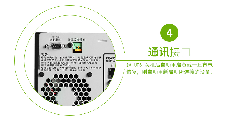 經(jīng) UPS 關(guān)機(jī)后自動重啟負(fù)載:一旦市電恢復(fù),則自動重新啟動所連接的設(shè)備。