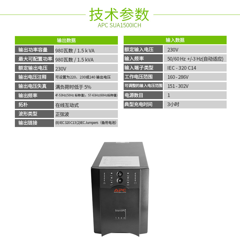 APC SUA1500ICH不間斷UPS電源適用于UPS辦公及家庭計(jì)算機(jī)電源保護(hù)。