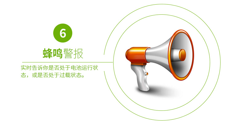 有聲報(bào)警:實(shí)時(shí)告訴你系統(tǒng)是否處于電池運(yùn)行狀態(tài),電池電壓是否低,或是否處于過(guò)載狀態(tài)。
