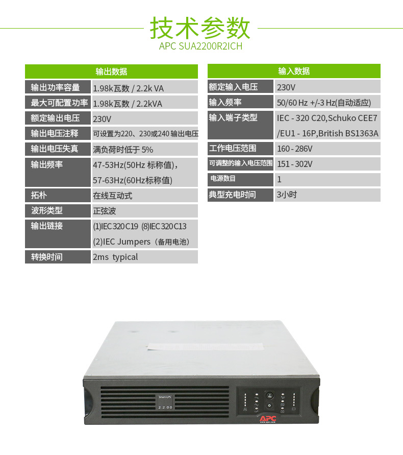 APC SUA2200R2ICH不間斷UPS電源適用于UPS辦公及家庭計算機(jī)電源保護(hù)。