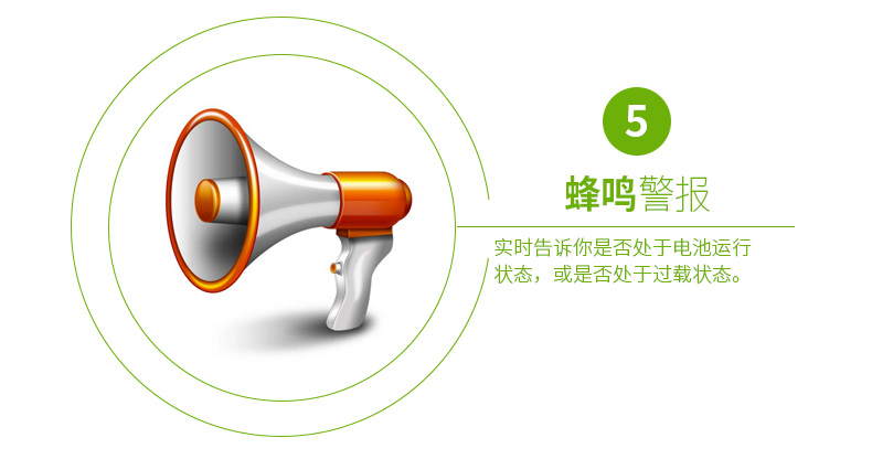 有聲報(bào)警:實(shí)時(shí)告訴你系統(tǒng)是否處于電池運(yùn)行狀態(tài),電池電壓是否低,或是否處于過(guò)載狀態(tài)。