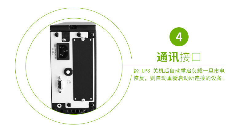經(jīng) UPS 關(guān)機(jī)后自動(dòng)重啟負(fù)載:一旦市電恢復(fù),則自動(dòng)重新啟動(dòng)所連接的設(shè)備。