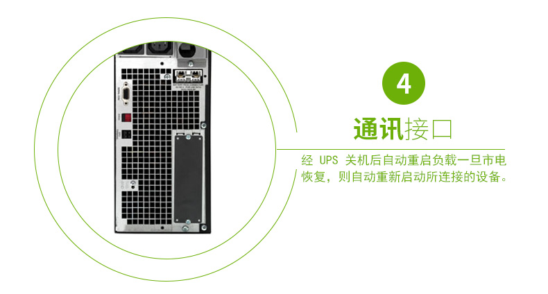 經(jīng) UPS 關(guān)機(jī)后自動(dòng)重啟負(fù)載:一旦市電恢復(fù),則自動(dòng)重新啟動(dòng)所連接的設(shè)備。
