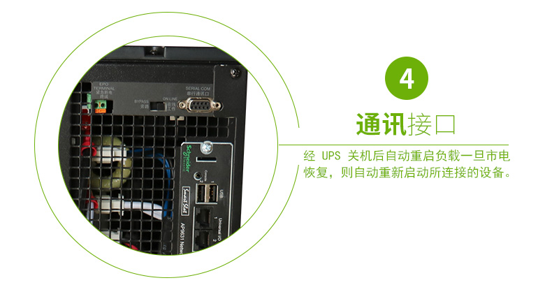 經(jīng) UPS 關機后自動重啟負載:一旦市電恢復,則自動重新啟動所連接的設備。