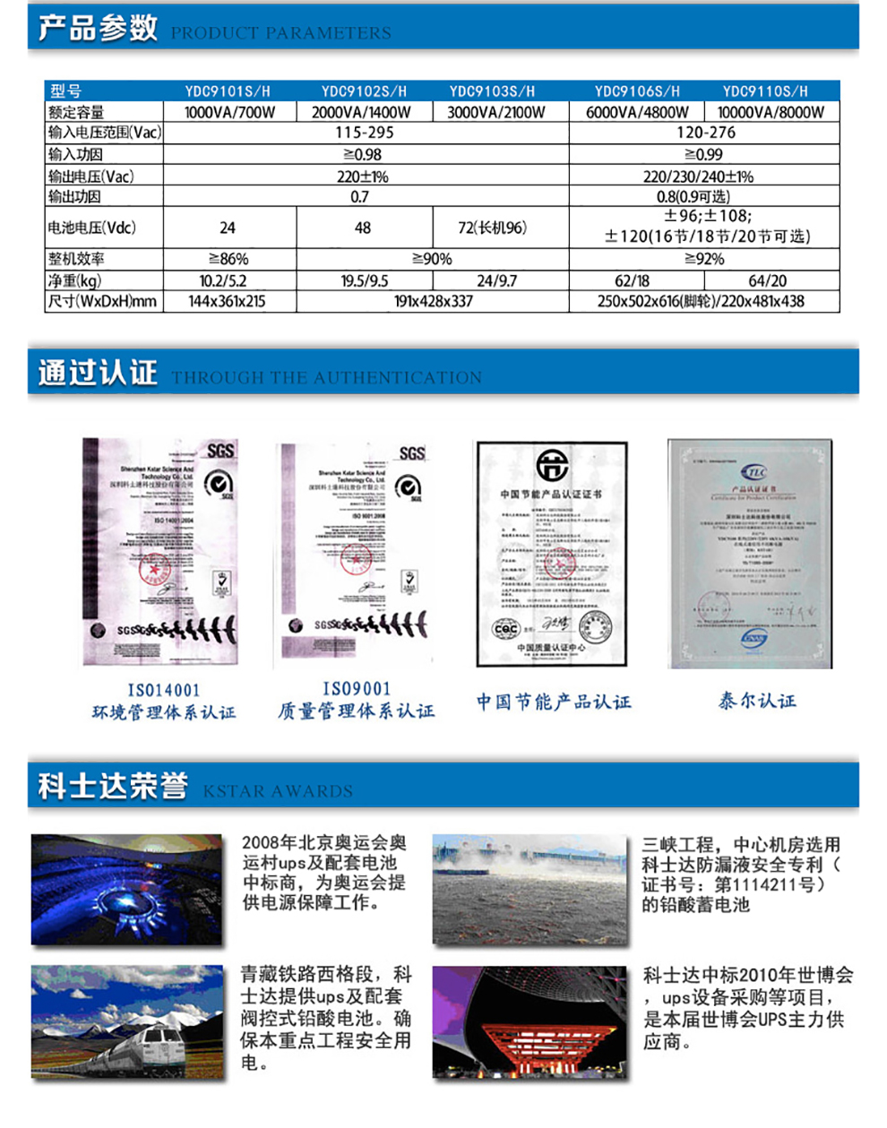 科士達kstar YDC9110S/H-RT 在線式不間斷UPS電源適用于UPS辦公及家庭計算機電源保護。