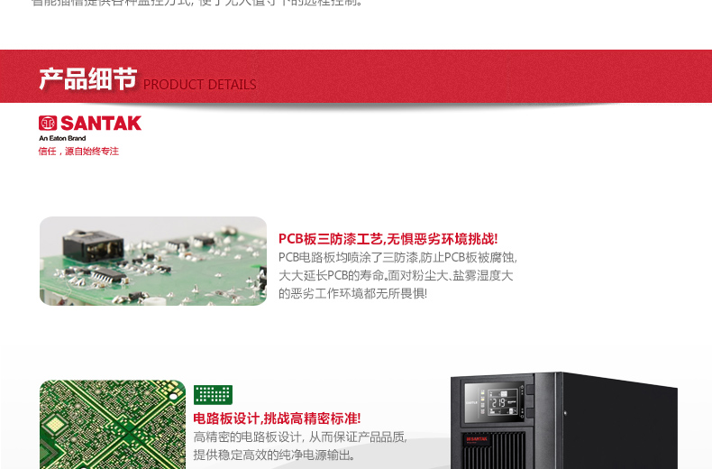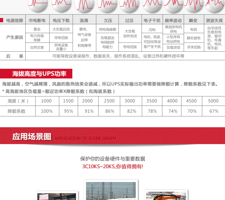 山特3C10KS系列UPS---傳承上一代產(chǎn)品的優(yōu)良品質(zhì),采用雙轉(zhuǎn)換純?cè)诰€式架構(gòu),外形美觀,產(chǎn)品性能和產(chǎn)品可靠性大大提升。 對(duì)電網(wǎng)出現(xiàn)的斷電、市電電壓過高或過低、電壓瞬間跌落或減幅震蕩、 高壓脈沖、電壓波動(dòng)、浪涌電壓、諧波失真、雜波干擾、頻率波動(dòng)等狀 況提供理想的解決方案,為用戶負(fù)載提供安全可靠的電源保障。山特3C10KS是一款具有強(qiáng)大適應(yīng)性、配置靈活的產(chǎn)品,采用先進(jìn)的DSP數(shù)字控制技術(shù),提供了非常豐富的可擴(kuò)展功能, 用戶可以根據(jù)需要靈活配置。