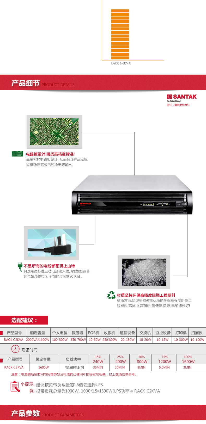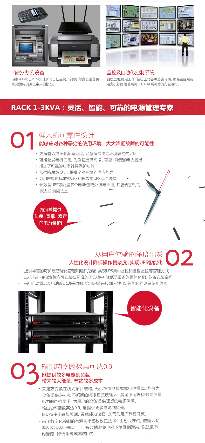 Rack UPS具備輸入功因修正功能,在滿載情況下,輸入功因可以達(dá)到0.95以上,使用戶的電網(wǎng)環(huán)境不會(huì)受到污染。