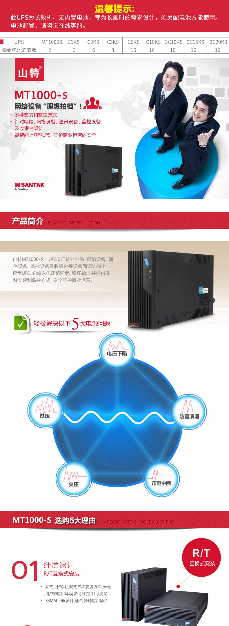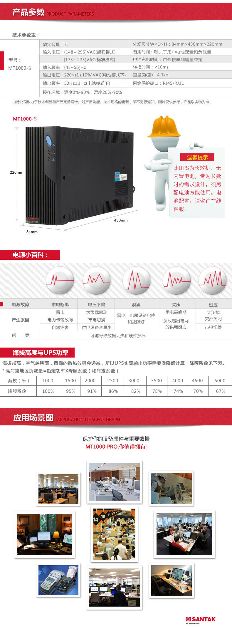 山特MT1000-s 1000VA/600W ups不間斷電源 長效機后備式