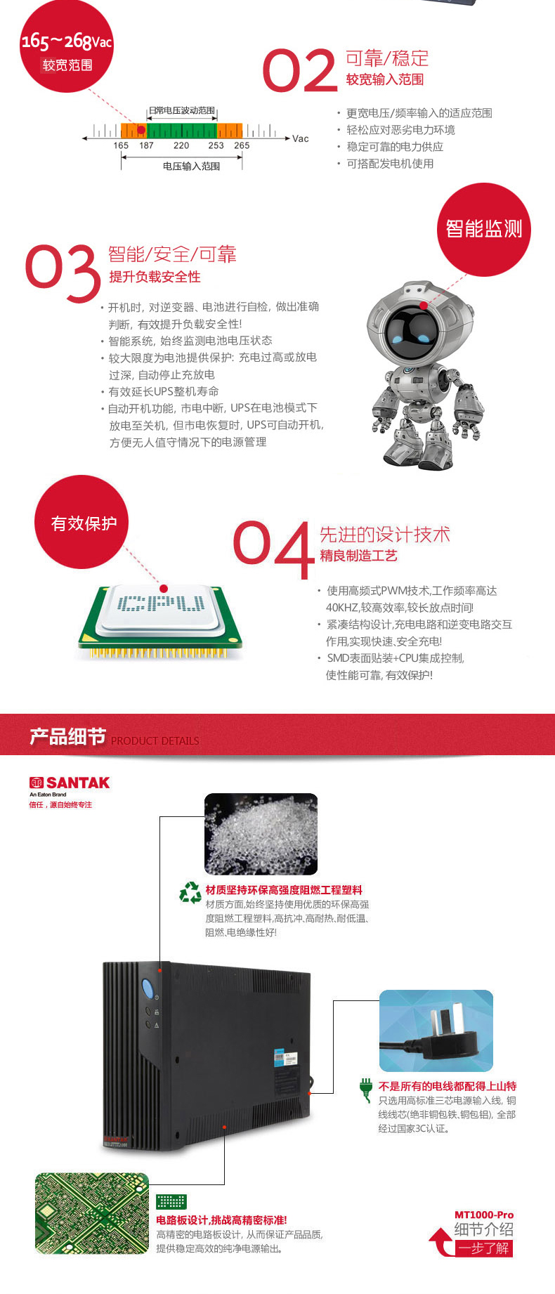MT- MT1000-s系列是智能上網(wǎng)型UPS,可提供各種通訊連接方式的電源管理方案。采用先進的CPU集成控制技術,并擁有超寬電壓輸入范圍和獨特的立式、臥式、機架 式三種安裝方式;還特別配置穩(wěn)壓輸出電源插座、浪涌保護插座和智能插卡,是中小企業(yè)、政府及教育等行業(yè)的服務器、網(wǎng)絡設備及工控產(chǎn)品的理想保護電源。